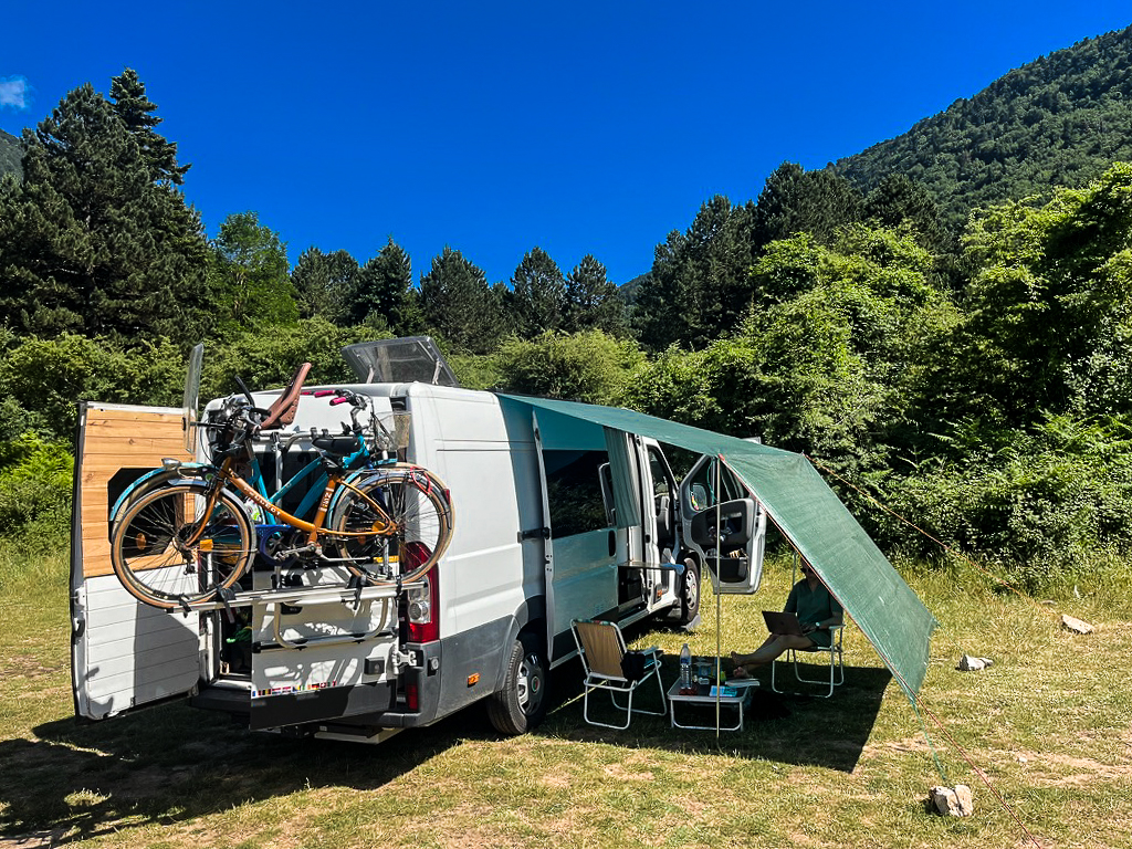« Ne tire pas la chasse ! », me dis-je en me rappelant que le bruit réveillerait un ours en hibernation, alors imagine un bébé d’un an. Qu’est-ce que je fais là ? Où est ma salle de bain avec lunette chauffante ? Deux semaines se sont déjà écoulées depuis le début de notre aventure à travers l’Europe dans notre van fait maison. Merci, destin, que notre déménagement à l’autre bout du monde ait réduit les six mois de voyage prévus à deux mois et demi. C’est probablement mieux ainsi. Ce mode de vie n’est peut-être pas fait pour moi. Et dire qu’à nos débuts, les voyages en van me semblaient si romantiques et pleins d’aventures… Aujourd’hui, après ces quelques jours depuis notre départ de France, j’ai la nette impression que ce voyage est la pire idée que je n’aie jamais eue. « Tu veux qu’on rentre ? Personne ne nous oblige à voyager », me rappelle mon mari lorsque je reviens au lit (en essayant toujours de ne pas réveiller le petit être qui dort dans son berceau à côté).